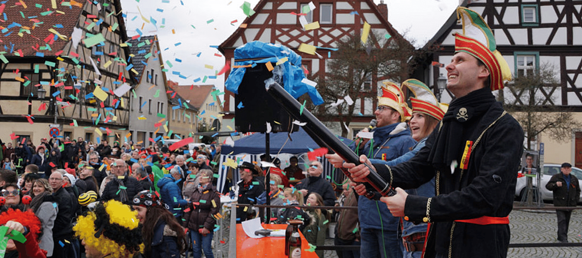 Um 14:00 startet der Gaudiwurm im Industriegebiet. Nach tollen Gardetänzen am Marktplatz geht's dann in die Brauereigasse zur Aftershow-Party mit der Partyband “Dochrinna”.