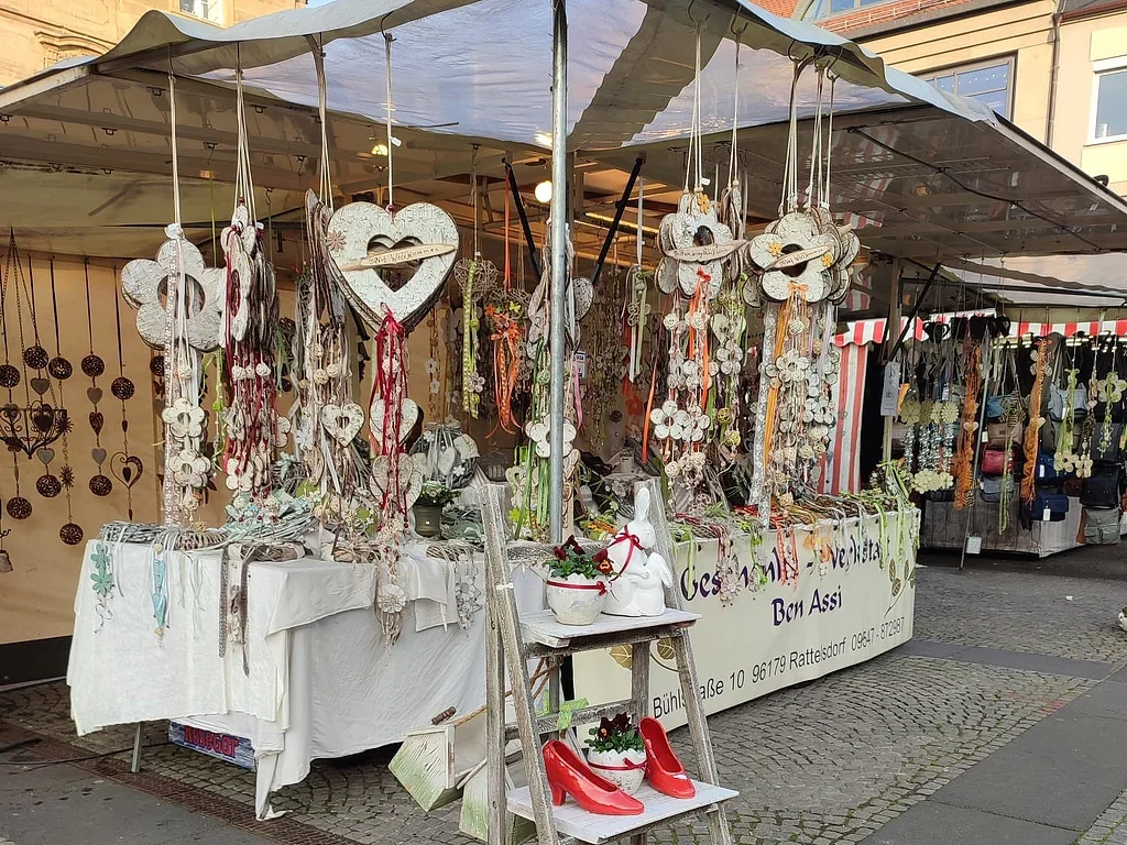 Angeboten werden Lederwaren, Dekoartikel, Süßwaren, Weine, Haushaltswaren und Bekleidung für Jung und Alt.