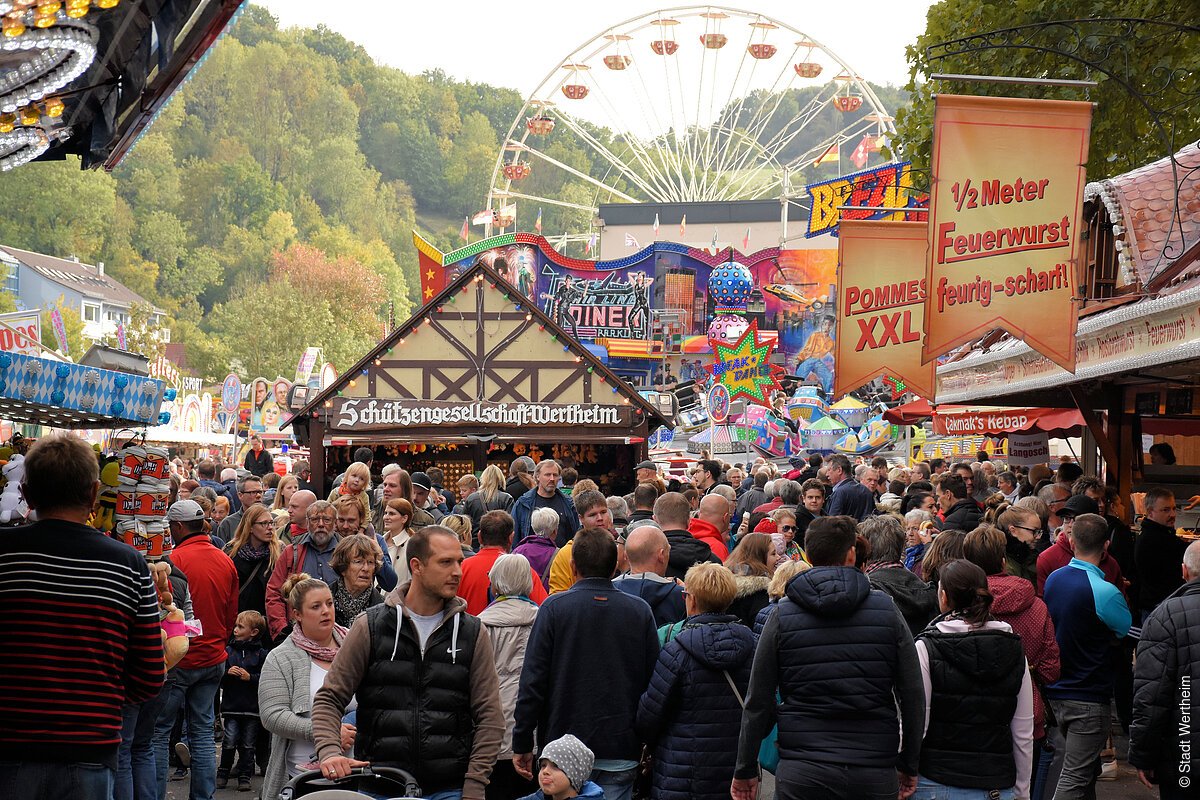 Die Wertheimer Michaelismesse ist der alljährliche Höhepunkt im Veranstaltungsreigen der Main-Tauber-Stadt. Eröffnet wird das traditionsreiche Volksfest mit dem Schützenruf und dem großen Festumzug. Nach zehn Tagen Festbetrieb klingt die Messe mit einem prächtigen Feuerwerk aus.