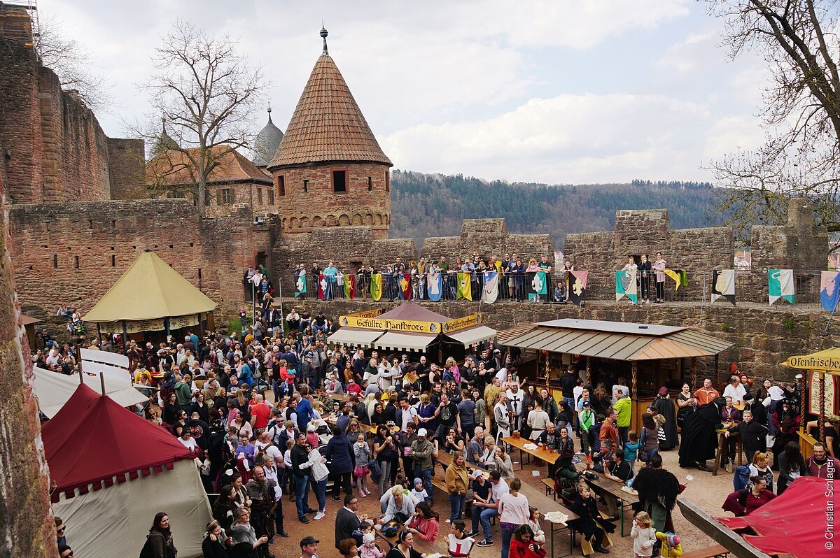 Auf der romantischen Burgruine hoch über der Stadt Wertheim kommen Handwerker, Krämer, Ritter, Musiker und Gaukler zusammen und präsentieren Unterhaltung auf hohem Niveau. Die Besucher erleben live den Trubel der Märkte in der Zeit der Ritter und Burgfräulein. Dazu gehören Prügeleien der Ritter auf der Wiese, eine große, qualmende Schmiede, Markttreiben auf den Wegen, eine Konzertbühne mit Musik und dazu Gaukelei zwischen Tischen und Bänken. Natürlich gehört auch die passende Gastronomie dazu; es gibt Schwein am Spieß, Brot aus dem Holzofen, Met und Bier aus dem Fass.