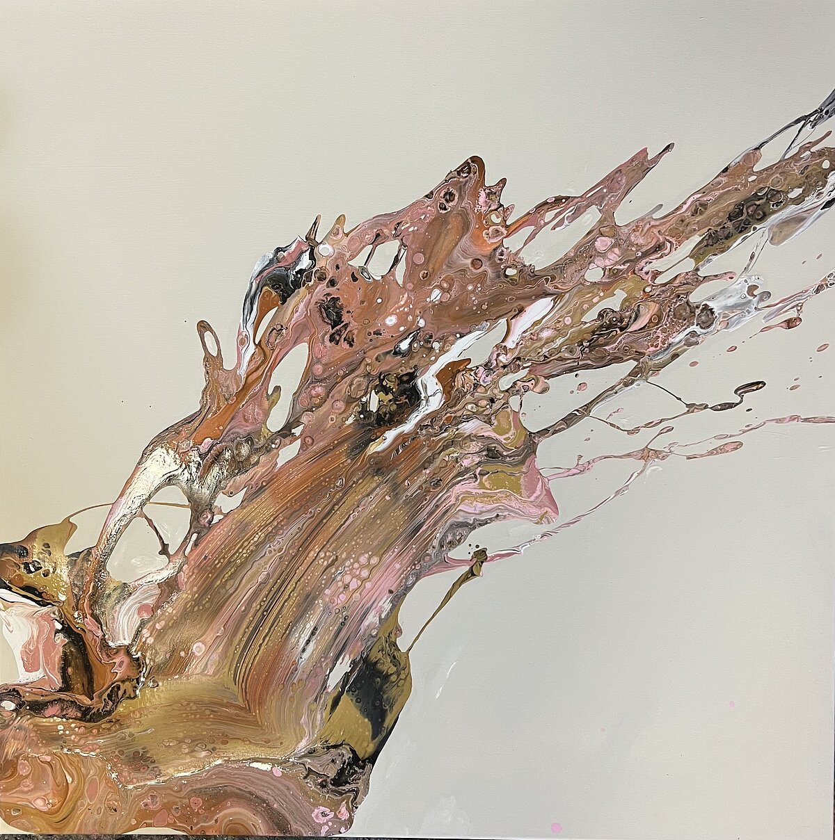 Simone Rössler bringt Farbe mit vielfältigen Techniken auf die Leinwand – mal geschüttet, mal gespachtelt –, sodass Farben und Bewegungen buchstäblich durch die Flächen und Bildräume fließen.