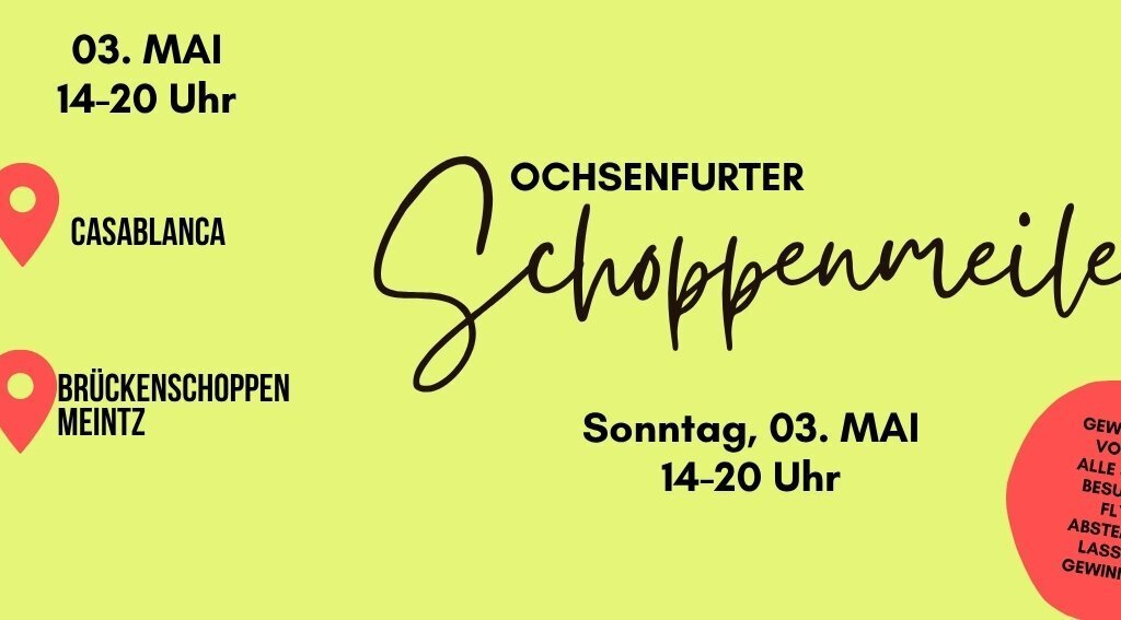 Ob mit Freunden, Familie, Kinderwagen oder einfach spontan – die Schoppenmeile ist für alle da. Locker, unkompliziert und voller Genuss. Einfach losziehen, treiben lassen und Ochsenfurt neu erleben – wir freuen uns auf euch!